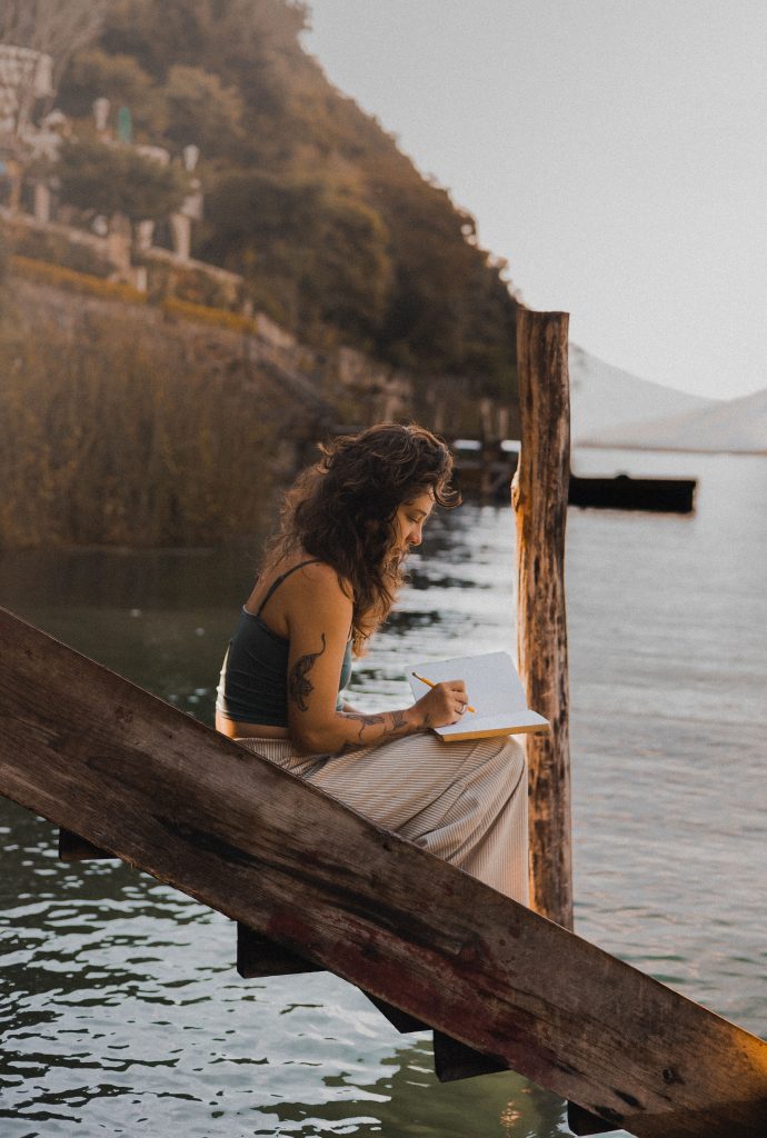 Cindy Barascout writing in Lake Atitlán, Guatemala.